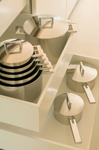Het Belgische pannenmerk Demeyere staat voor hoogwaardig koken, met optimale materialen. Bij Demeyere staan ingenieurs centraal: mensen met verstand van metalen en metaalbewerking, van productiemethodes en van de processen die bij koken centraal staan: verhitting en druk. Deze ingenieurs werken samen met koks om tot optimale pannen te komen. Met designer en architect John Pawson heeft Demeyere daar in een speciale collectie nog een extra ingrediënt aan toegevoegd. Daaruit is de John Pawson collectie voortgekomen: handige pannen met een hoogwaardig, stijlvol design. De stilering is zo, dat het geheel een eenheid vormt, waarbij ook de aparte metaalstructuur opvalt - de pannen zijn niet mat, maar ook niet glanzend, het zit er tussenin en toont echt de ware 'kleur' van het edelstaal. De uitgebreide collectie van Demeyere biedt alle mogelijkheden die je je maar kunt wensen: kookpannen, koekenpannen, steelpannen, in vele verschillende maten. Bij Demeyere wordt goed aan de ergonomie gedacht. Je moet een pan goed kunnen hanteren. Hoewel een volle soeppan natuurlijk altijd zwaar blijft, is het belangrijk dat een pan goed is vast te pakken - zeker omdat hoge kwaliteit kookpannen niet al te licht zijn. De kookpannen zijn voorzien van speciale bodems, voor een optimale warmtegeleiding. Handgrepen zijn zeer solide uitgevoerd en geleiden weinig warmte, wat het hanteren van de warme pannen veel makkelijker maakt.