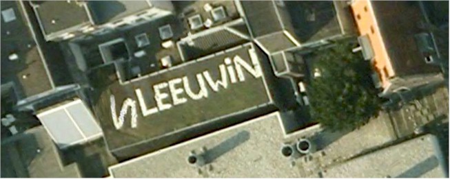Het logo zou op het dak geschilderd zijn. Nee dus, het bestaat uit